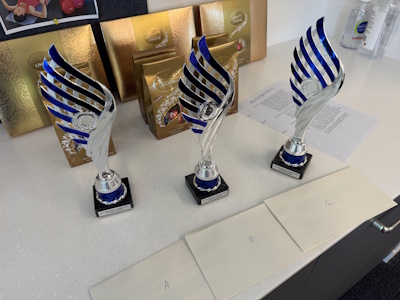 Andrew won the Candidates Division today. He plays David for the trophy or the envelopeFrank wins today's OpenFrank, Dianne, Carol, John all take out prizes todayPrizes on offer todayThe Manningham Hotel was a great first time venue for us!