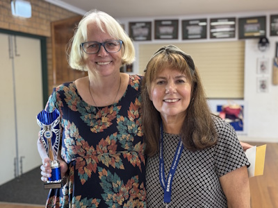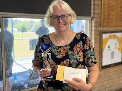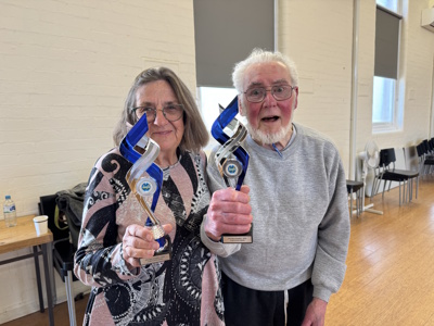 Trevor and Annette received trophies in their respective divisions and we congratulate all our prize winners today (including our two youngest players who secured prizes as well).