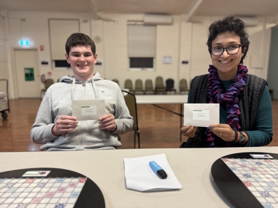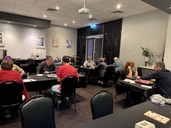 The weather may have been rainy and made it perfect for Scrabble! This was our biggest Aestival since COVID ended and exceeded last year’s attendance by 2. We welcomed Julie, Caroline, and Finley for their first events – with further welcomes to Jane Taylor (SA) and for Sylvia and Alistair, who travelled from the east of the state to play today.