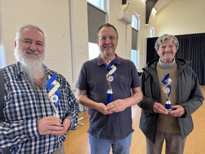 Close right up to the end, but with his final winning game, Andrew Fisher has won the Masters trophy for the 4th time. This was the 20th anniversary of the competition which Andrew had initiated.