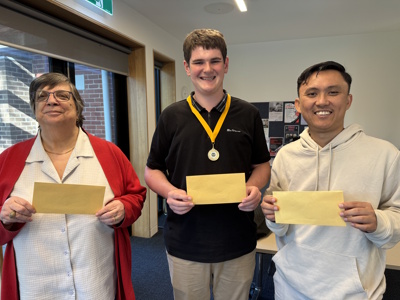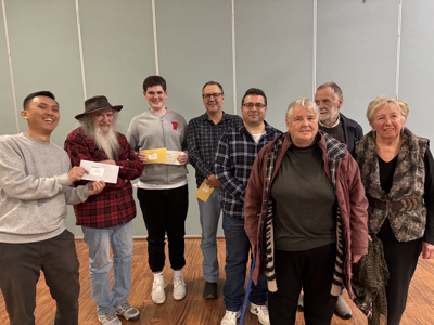 Edward: Decathon ChampionEdward, Trevor, Fadlan, DavidOur Rating Band winners: Bobby, Paula, Mardi, KarenHigh Game and High Word winnersOur three novelty word prize winnersDavid's 608 game is High Game on the day