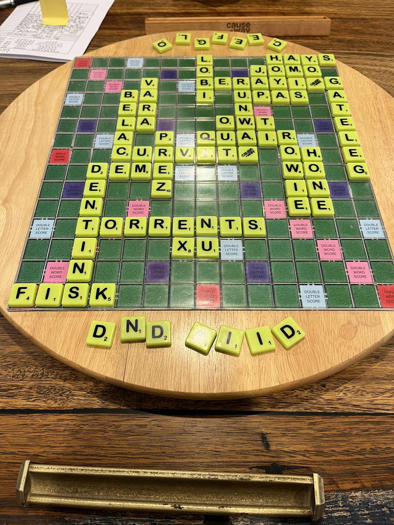 Rob takes out the monthly prize!Our playing arenaLetters do not always go your way!Come for the food, stay for the Scrabble