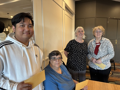 Edward: Decathon ChampionEdward, Trevor, Fadlan, DavidOur Rating Band winners: Bobby, Paula, Mardi, KarenHigh Game and High Word winnersOur three novelty word prize winnersDavid's 608 game is High Game on the day